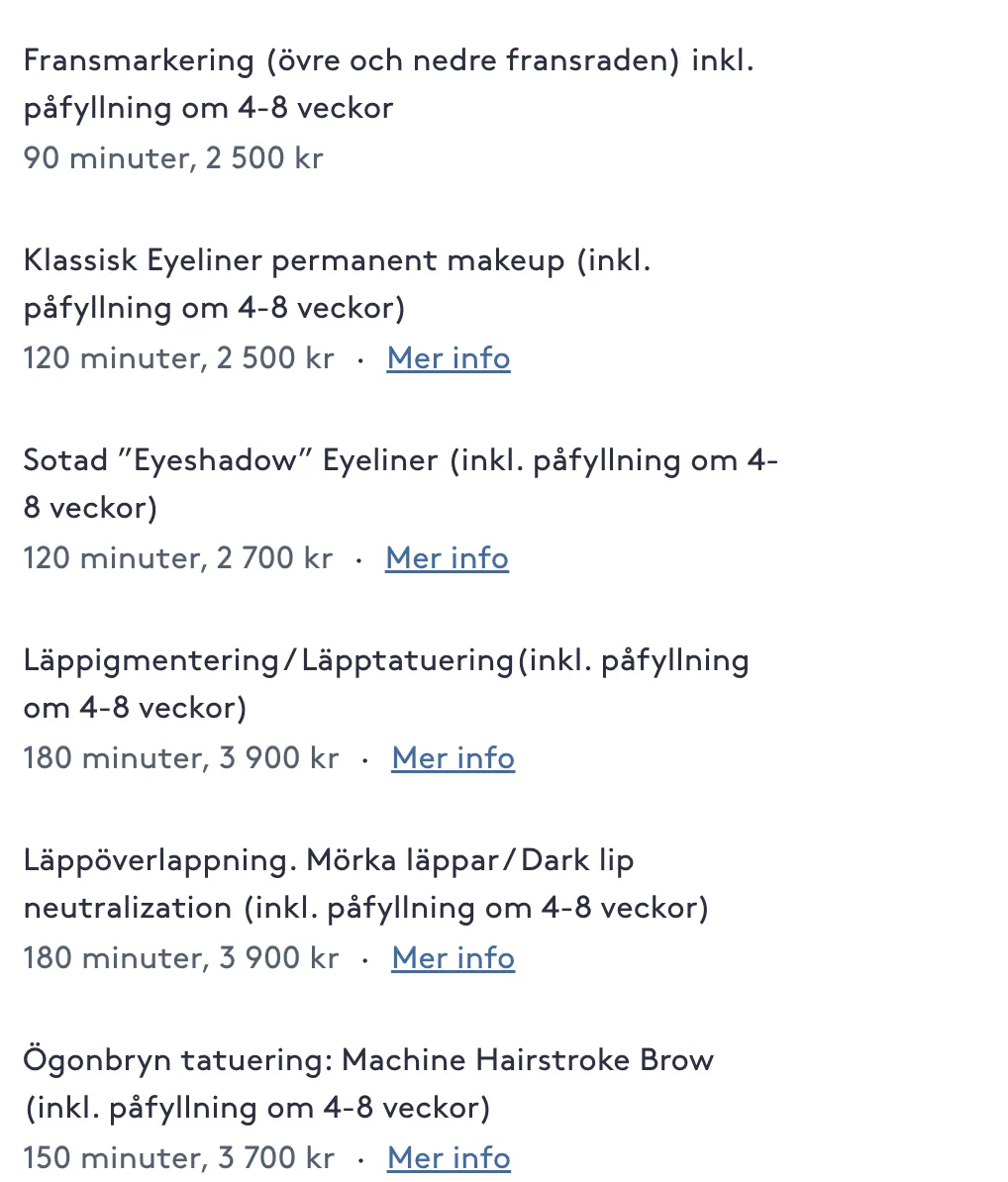 Hos oss möts du av utbildad och certifierad personal som brinner för sitt arbete och alltid sätter din säkerhet och nöjdhet i första hand. Vi skräddarsyr varje behandling efter dina önskemål för att uppnå ett naturligt och vackert resultat.