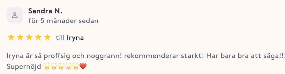 Jag heter Iryna och driver Miss Glamouris Studio. Vi har lång erfarenhet inom skönhetsbranschen och är specialiserade på Permanent Makeup. Vår passion är att hjälpa våra kunder att känna sig vackra och självsäkra.