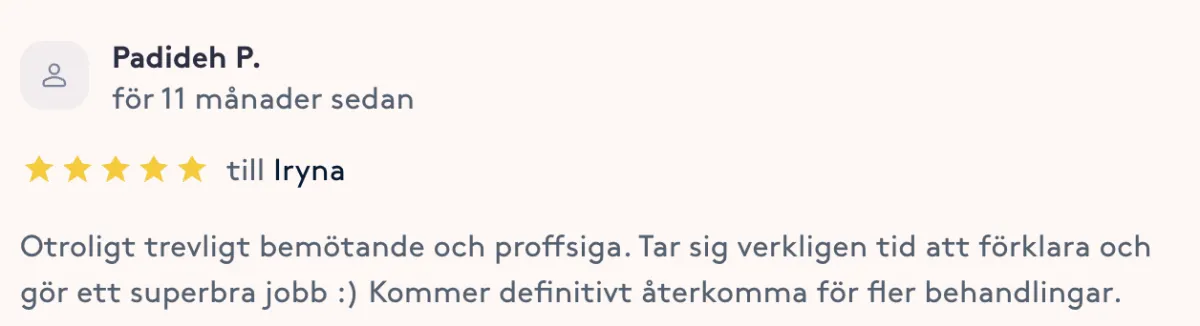 Varje konsultation skräddarsys efter din tidigare erfarenhet, och vi tar oss alltid tid att besvara dina frågor och förbereda dig inför din behandling.